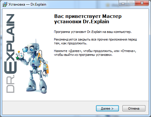 Скачайте дистрибутив программы Dr.Explain в разделе «Загрузить» официального сайта продукта по адресу http://www.drexplain.ru/ и пройдите стандартную процедуру установки программного обеспечения для начала его использования.