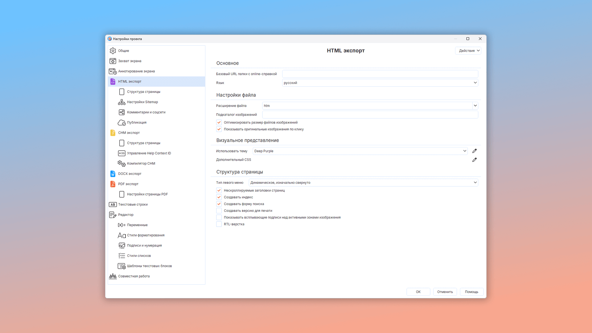 Разработка и экспорт без специальных знаний. Для создания руководств в любом из форматов, предлагаемы программой, не требуется знания кода.