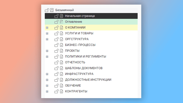 Проект Dr.Explain, созданный из шаблона базы знаний для компании, будет содержать готовое дерево разделов, а сами разделы будут частично заполнены структурным контентом — заголовками, подзаголовками и подсказками по их дальнейшему заполнению.