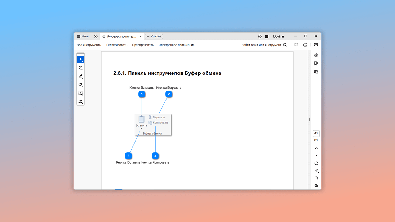 Минимум лишних действий. В программе упрощены процессы, связанные с добавлением информации. Например, создание нового раздела или добавление текста, изображений или схем происходит через простые действия с помощью кнопок и перетаскивания объектов, что избавляет от необходимости изучать сложные меню и интерфейсы.