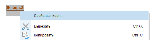 . Чтобы отредактировать имя якоря, сделайте двойной щелчок по этому значку или вызовите контекстное меню правой кнопкой мыши и выберите в нем пункт Свойства якоря...: