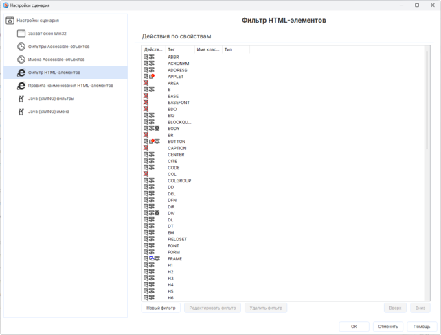 В открывшемся окне выберите пункт Фильтр HTML-элементов и нажмите копку Новый фильтр: