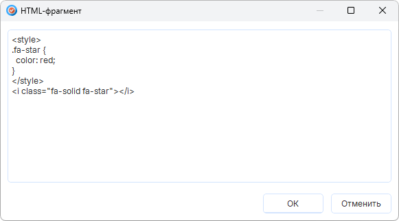 в панели инструментов и добавьте этот скопированный код в окно HTML-фрагмент: