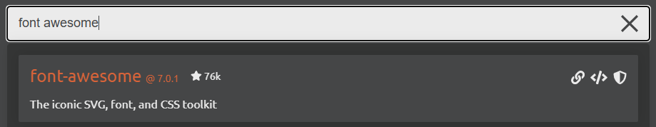 Копируйте ссылку https://cdnjs.cloudflare.com/ajax/libs/font-awesome/7.0.0/css/all.min.css (актуальную на момент написания этой статьи):