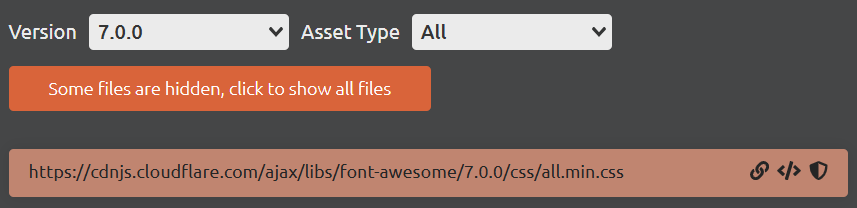 После этого откроется страница со ссылками на разные версии библиотеки Fontawesome.