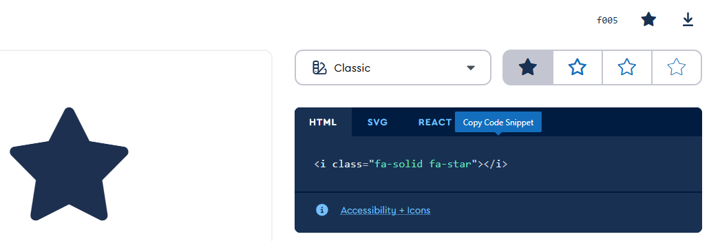 Откройте сайт Font Awesome и копируйте код иконки, например, иконки "star":