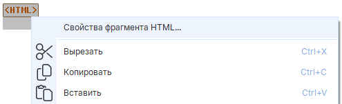 или нажмите его правой клавишей мыши и в появившемся контекстном меню выберите пункт Свойства фрагмента HTML: