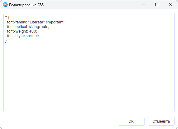 В открывшемся окне Редактирование CSS вставьте следующий код:
