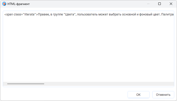 в панели инструментов. В появившемся окне вставьте нужный фрагмент текста, обернув его в тег span с классом literata: