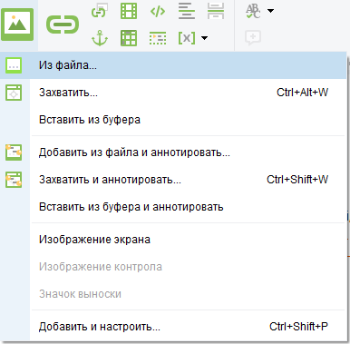 в панели инструментов и в появившемся меню выберите пункт Из файла: