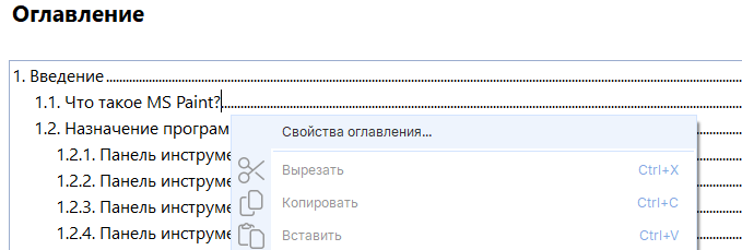 Настроить стиль объекта оглавления можно в диалоговом окне свойств оглавления. Дважды щелкните объект оглавления или вызовите диалог из контекстного меню (пункт Свойства оглавления):